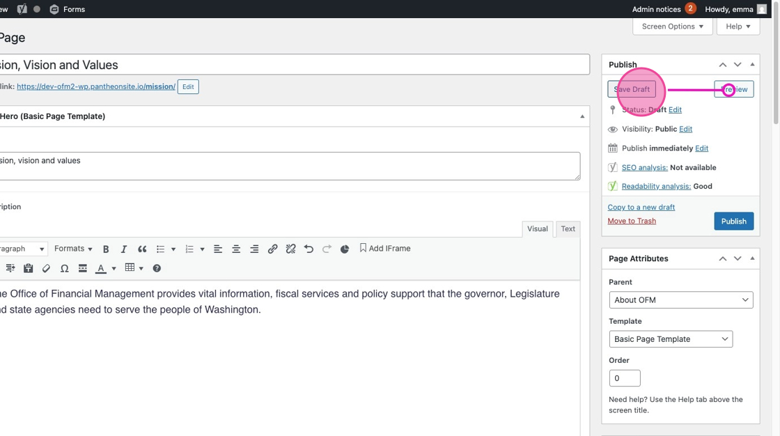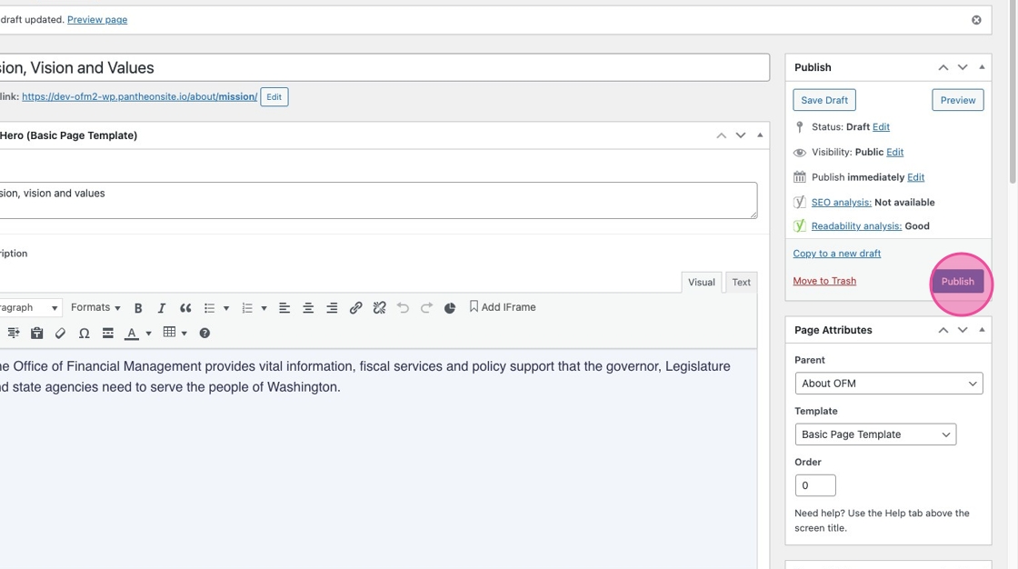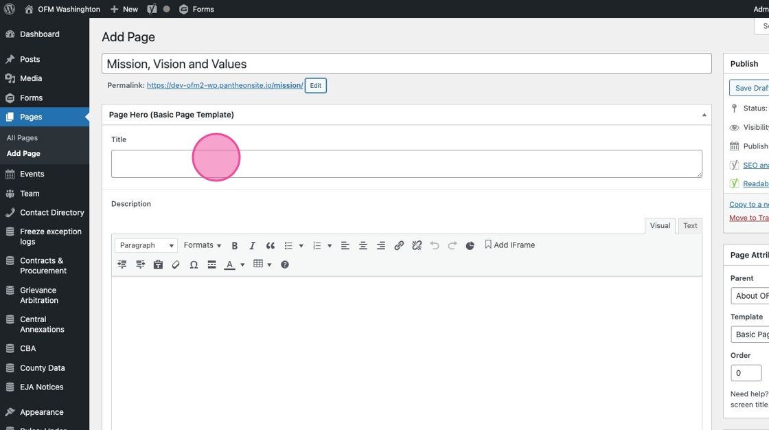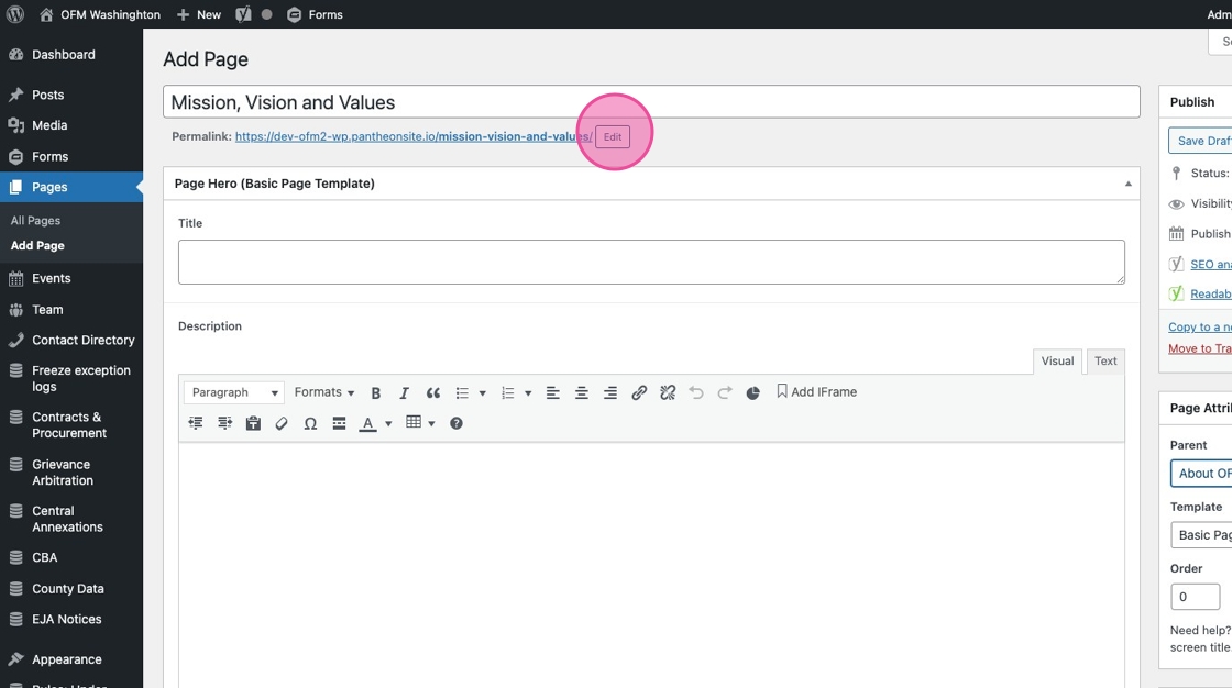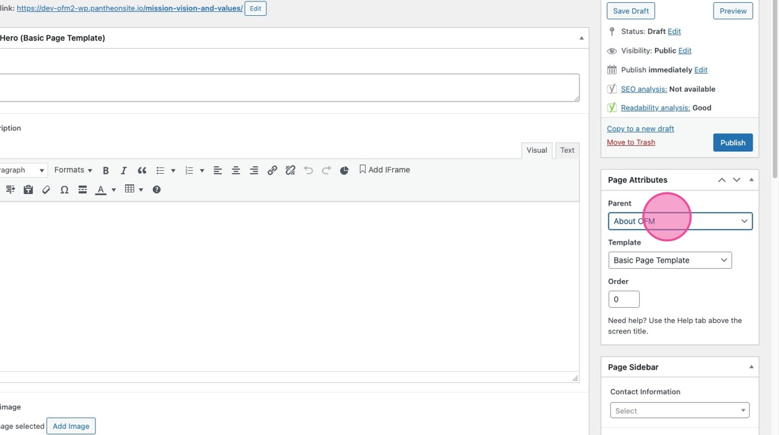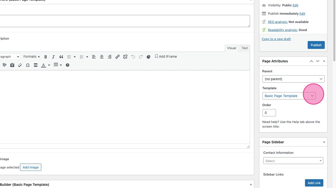 3. Under Page Attributes > Templates, make sure you’ve selected Basic Page Template
