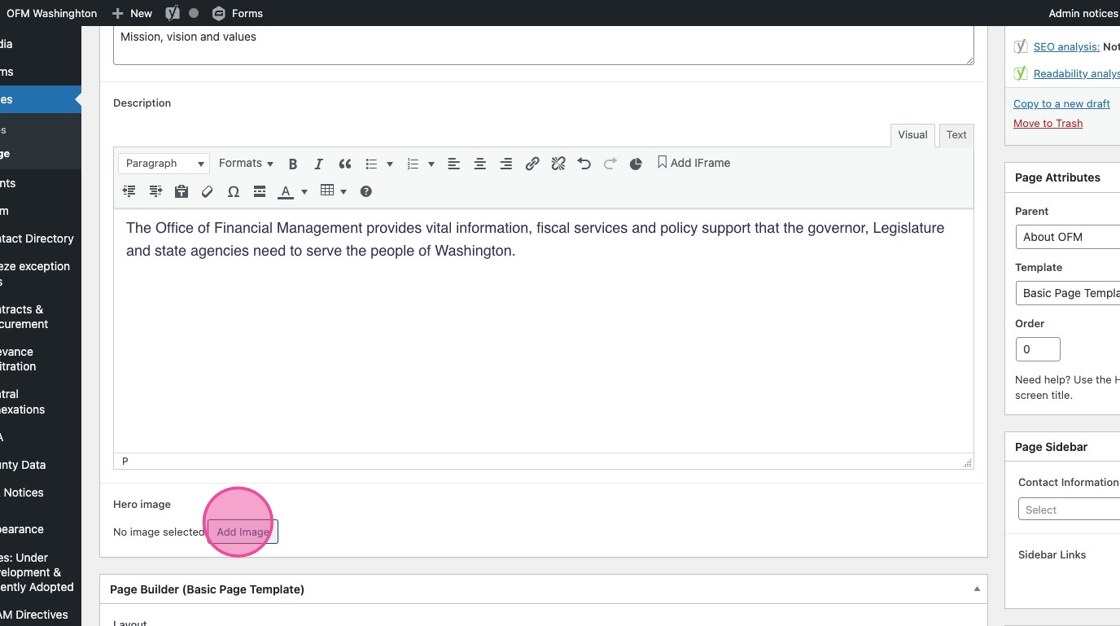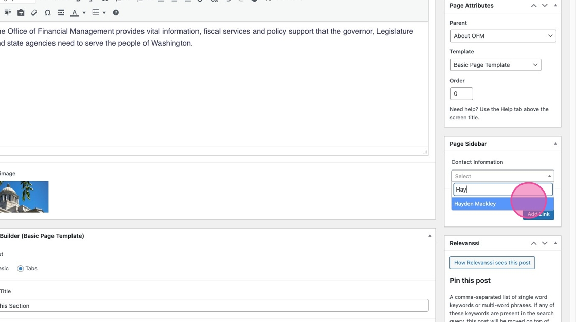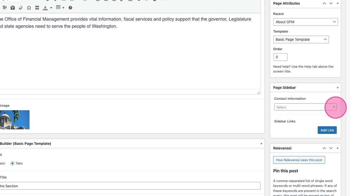 This determines how your page is nested on the site and the URL path. Your parent page should be the most relevant page in the hierarchy of the sitemap. Email alma.perez@ofm.wa.gov for help determining your parent page.