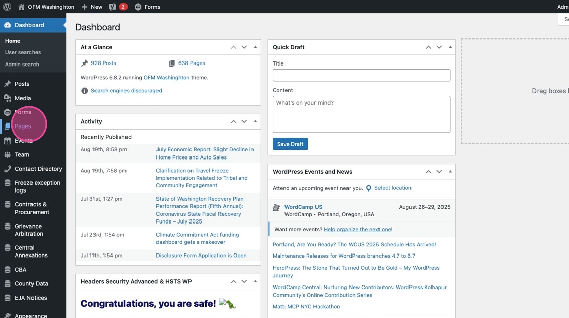 This is the second most common page type on the new WordPress site. Use it when you’d like to make a clump of like-minded pages all live together in one section.