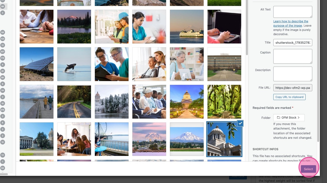 You can either navigation to the OFM Stock folder to browse available options, or upload your own image to one of your Division’s folders.