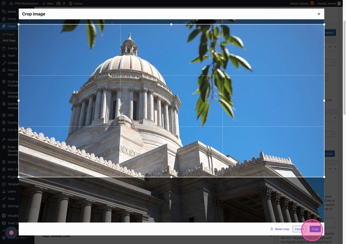 9. If you decide to include a Hero image on you page, the Media Library will automatically open.