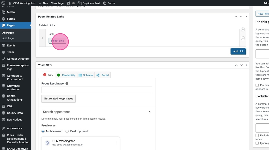 15. Click “Add Link” in the Related Links section to start building out your related links.