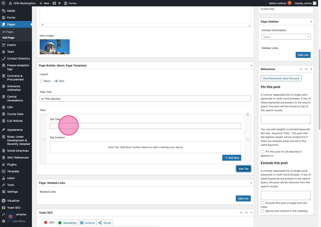 13. Label each tab by filling in the Tab Title field