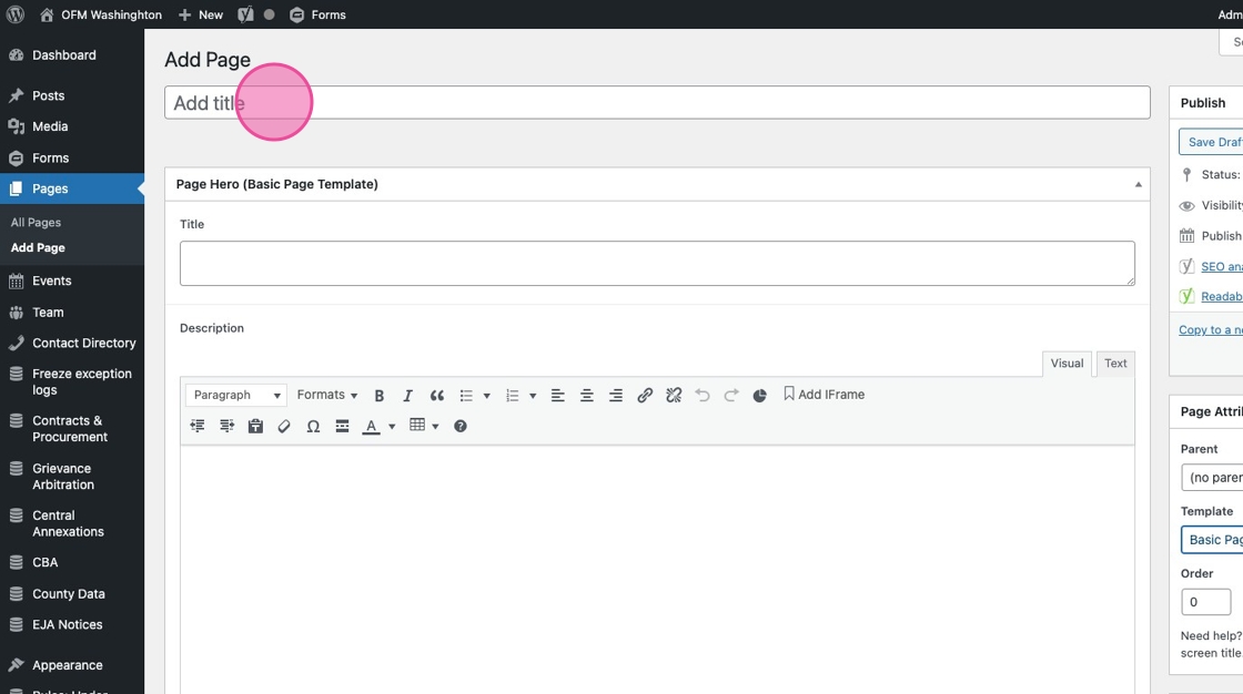 7. In the Page Hero section, add the title you want to display on the page.