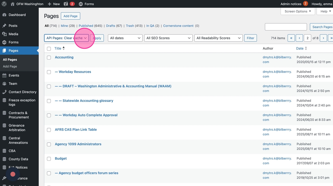 5. If needed, bulk-select Budget API pages and clear the cache.