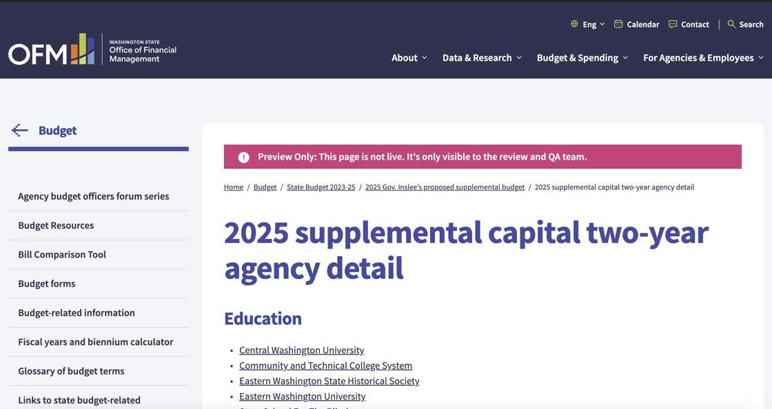 This page template is used to pull in data for all proposed budgets. There is some additional functionality built into this template to support the Budget Division’s “dry runs” during budget season.