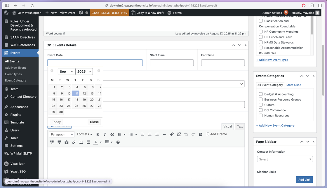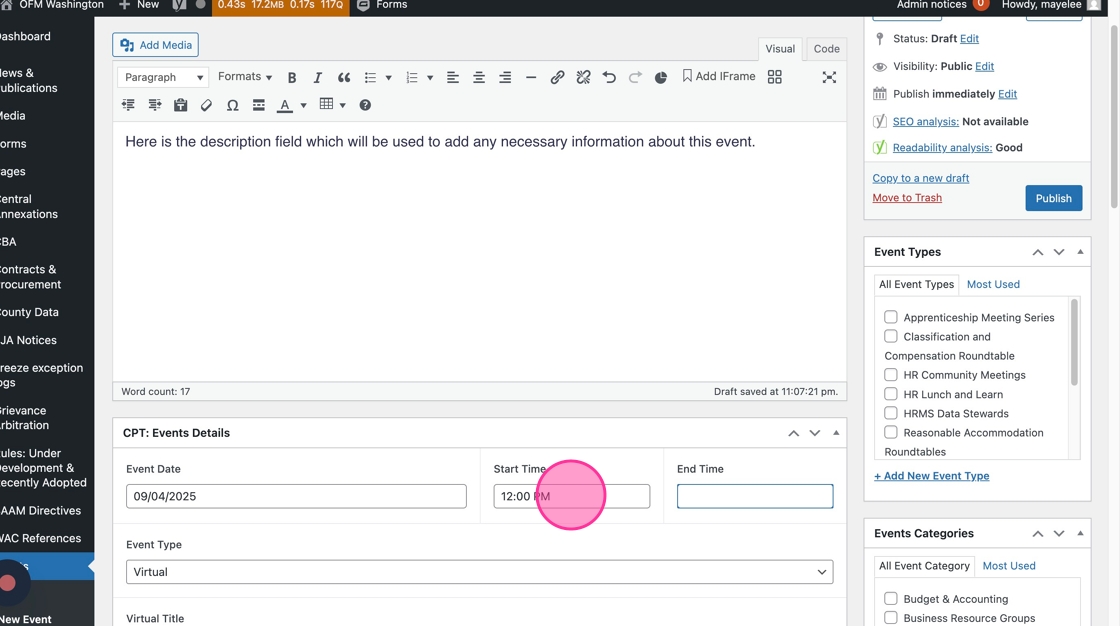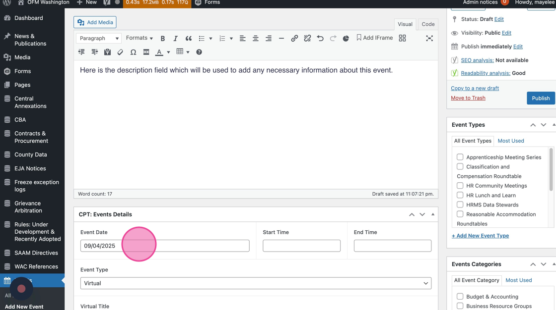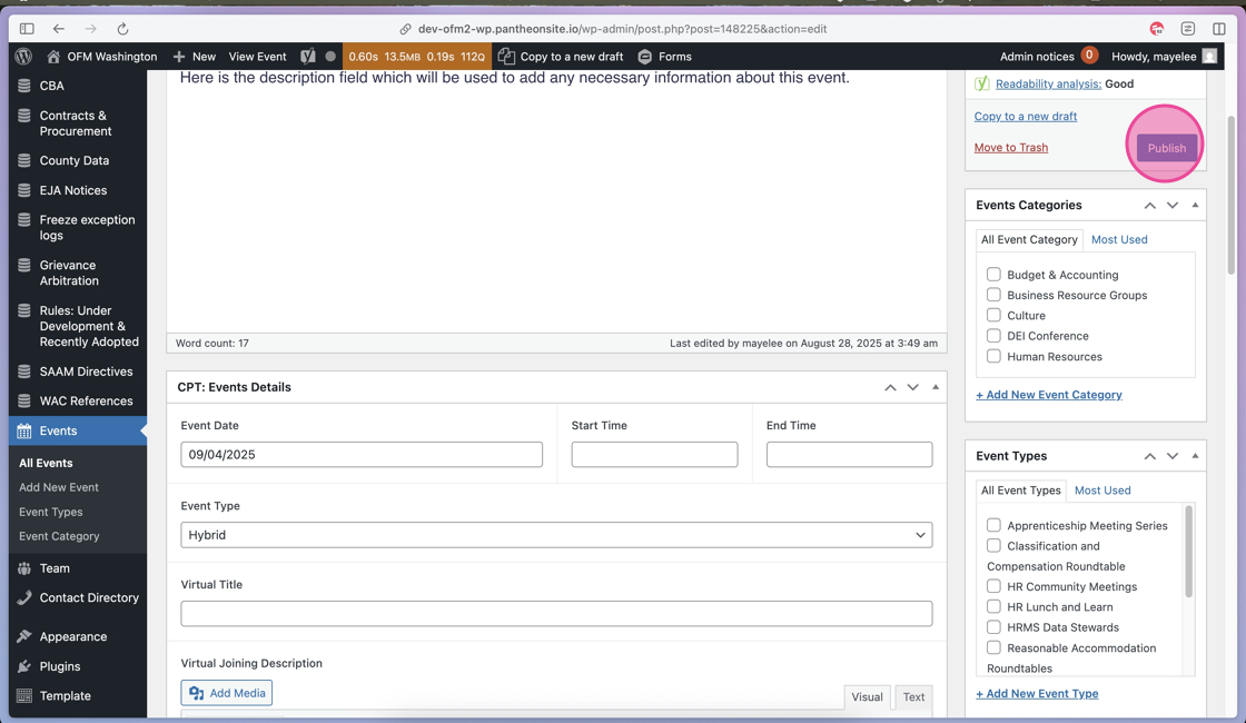 36. After you have added the necessary content to the Event post fields, click Publish to display this Event on the frontend.