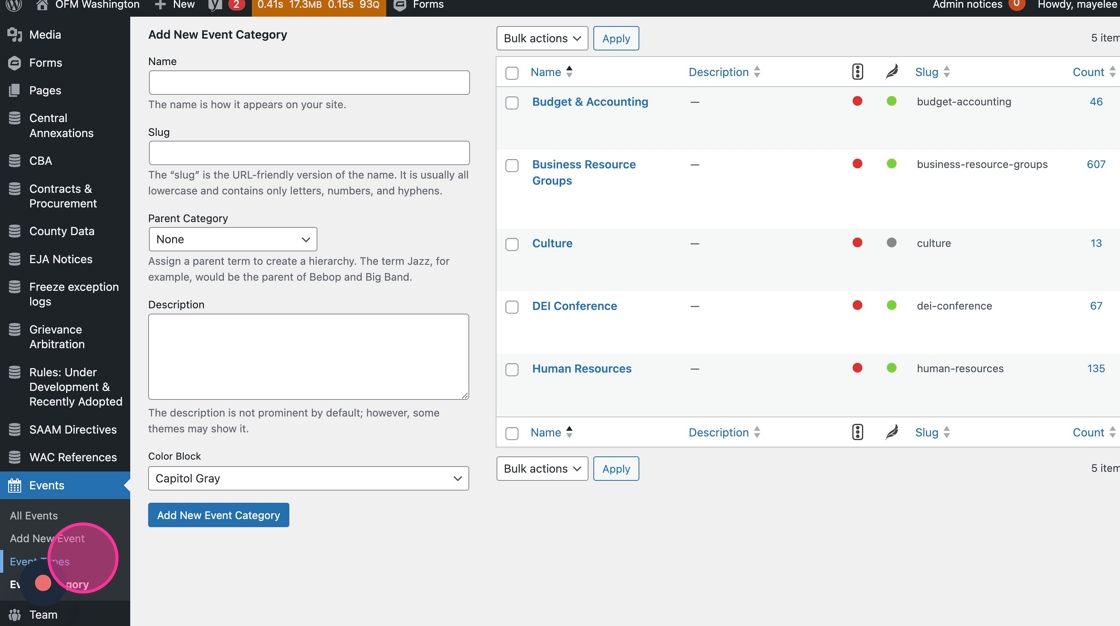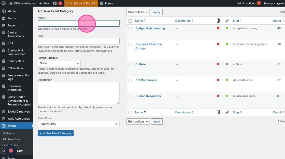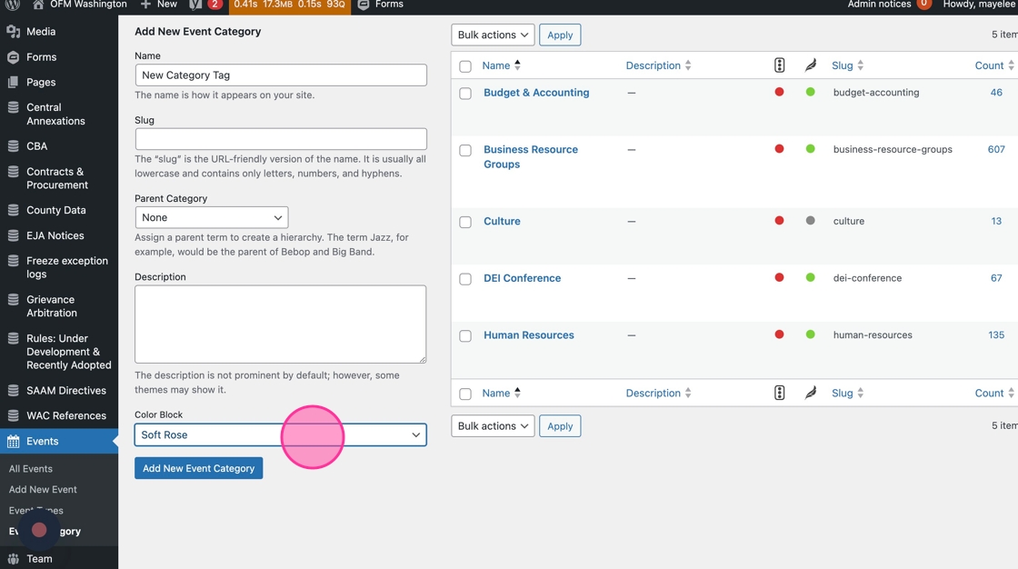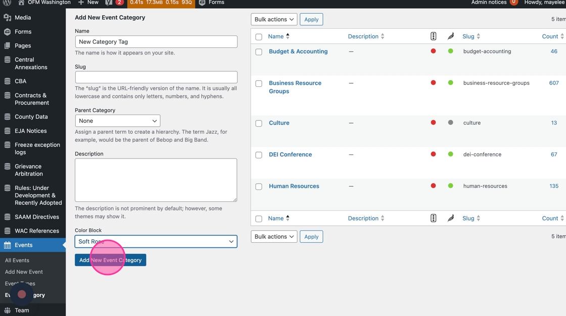 30. Each Event post should be assigned a Category tag. Adding Events to a Category allows users to filter Events on the calendar. It also allows web editors to display this content in other places on the OFM site.