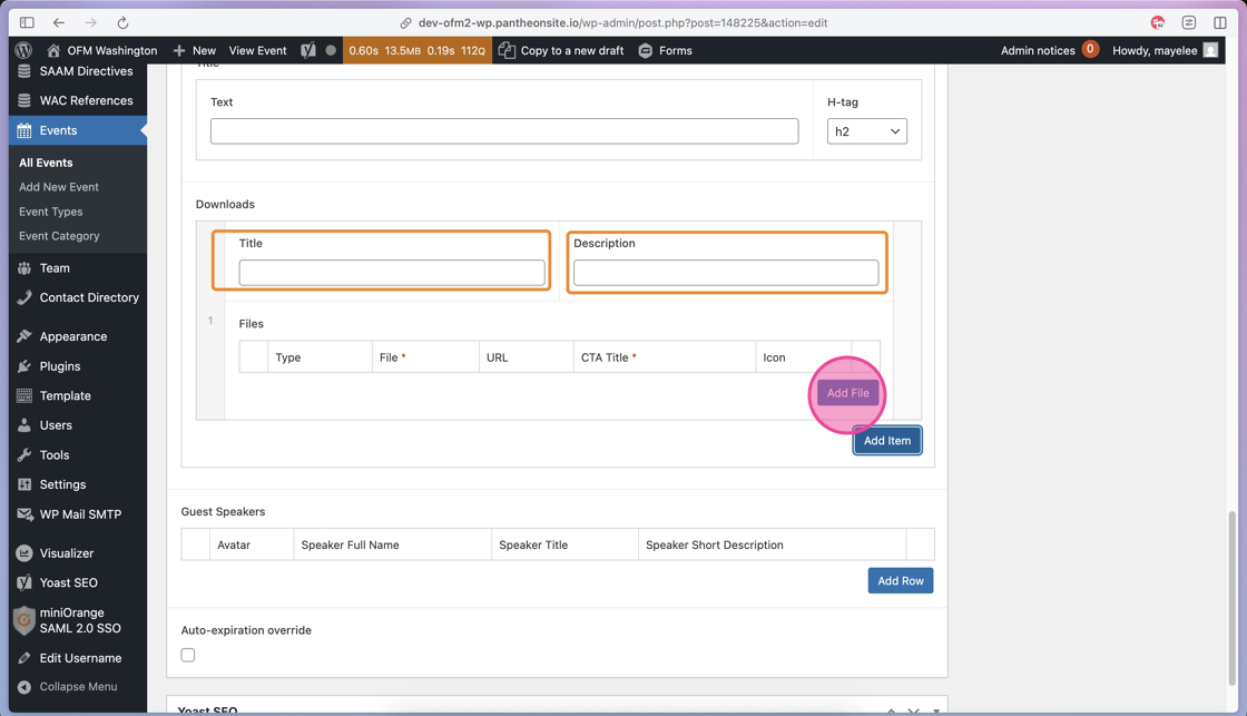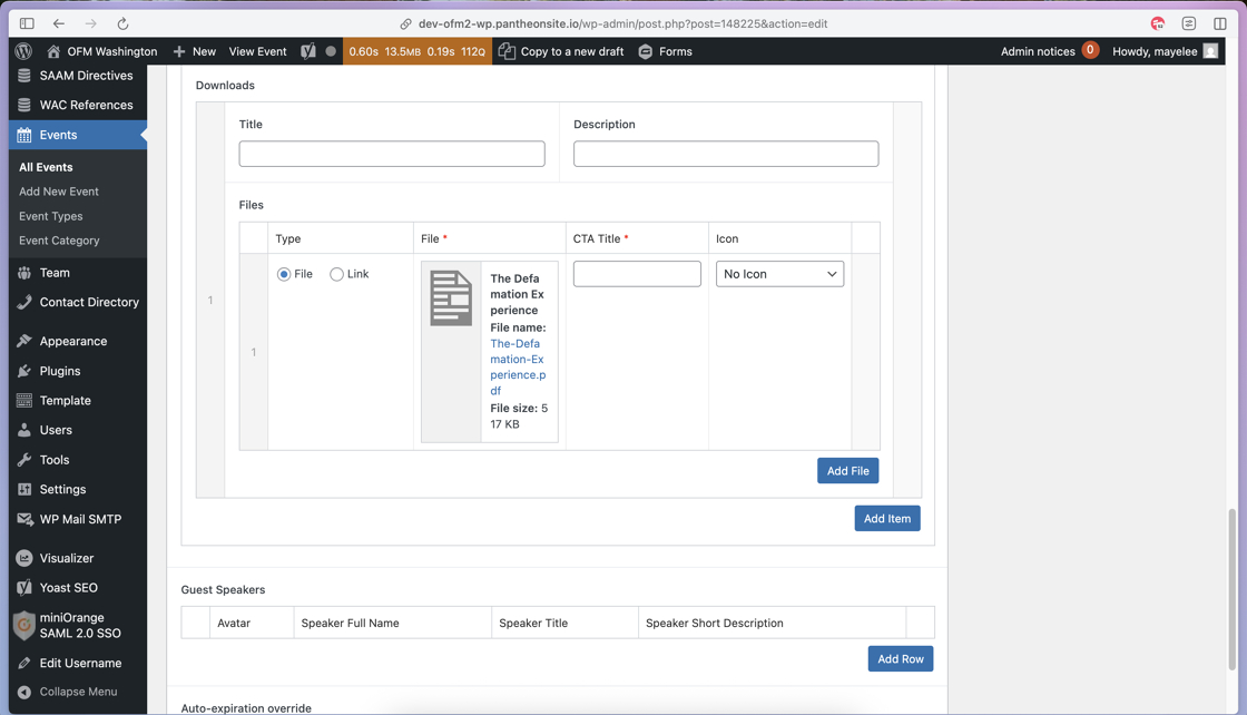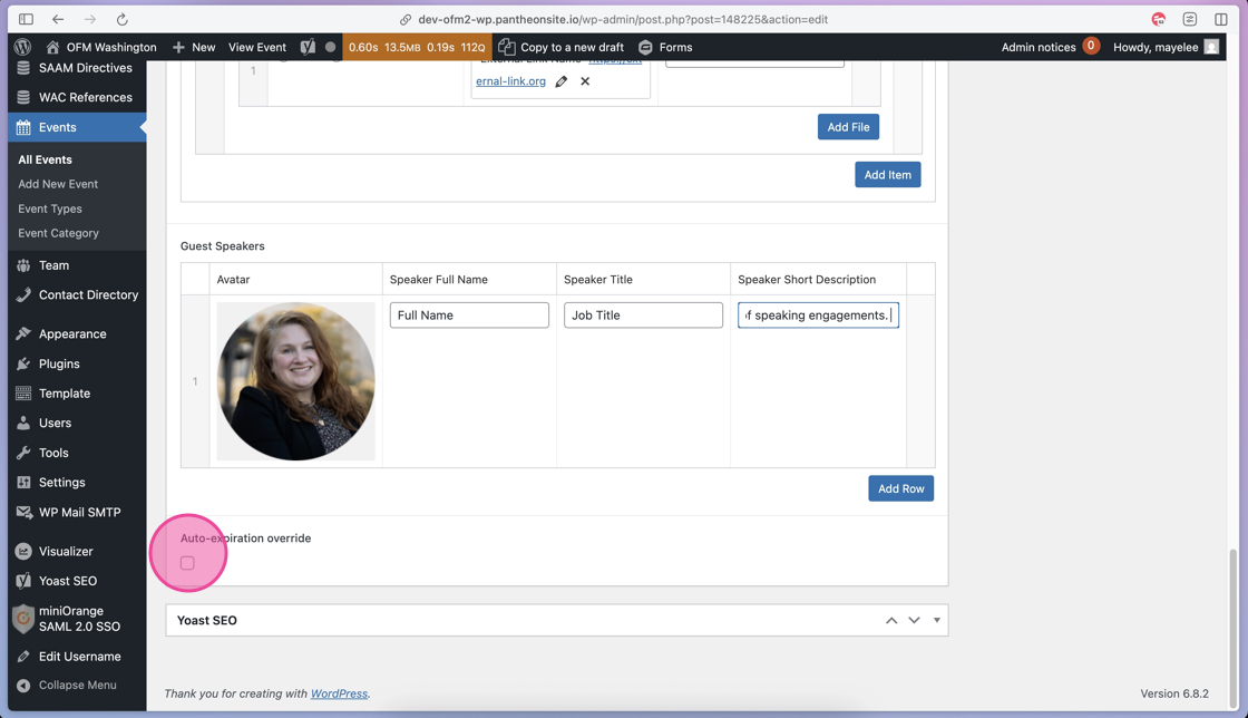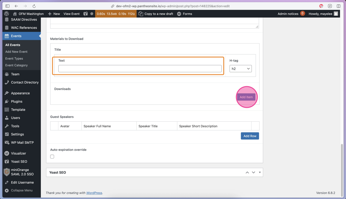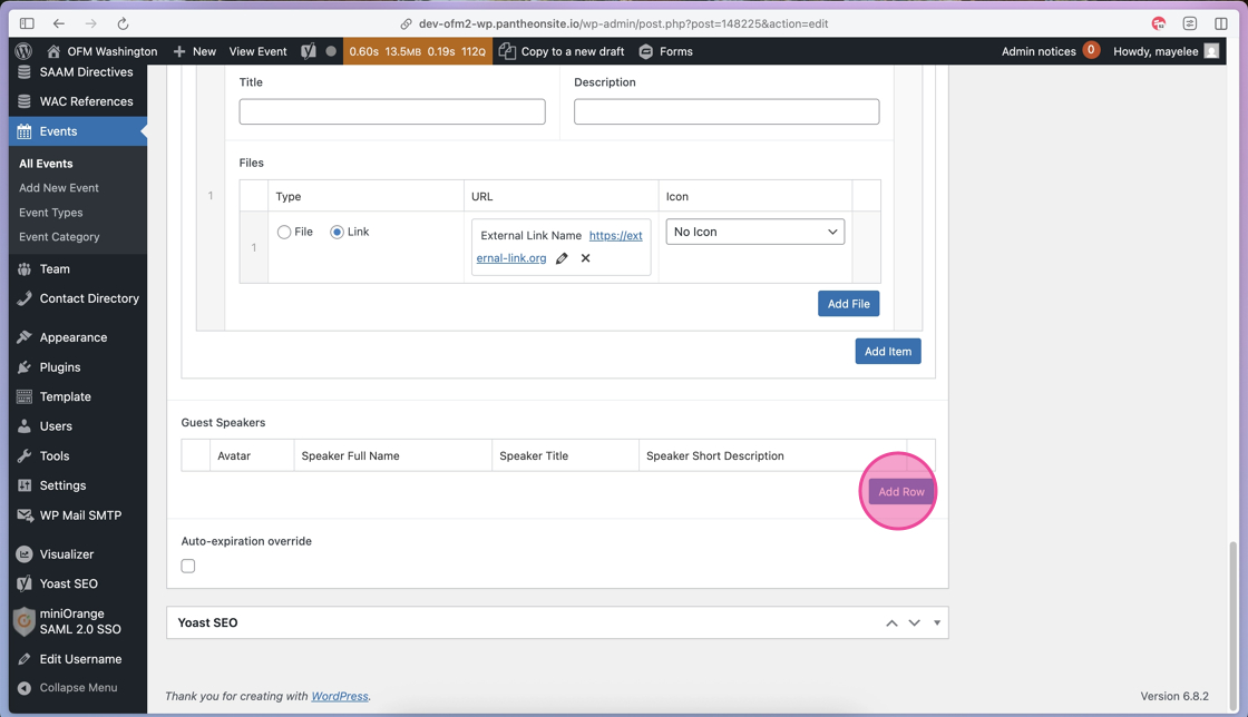 23. If your event includes Guest Speakers, you will click the Add Row to open those content fields.
