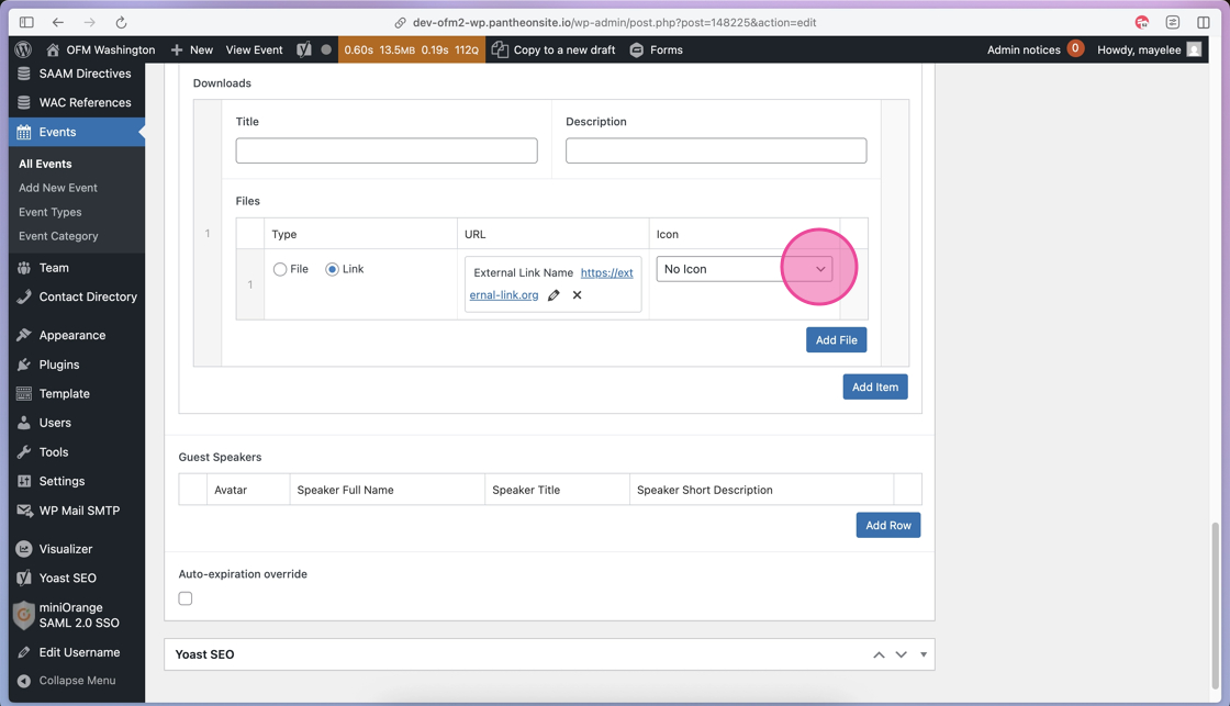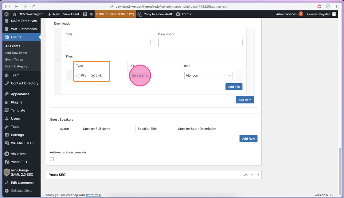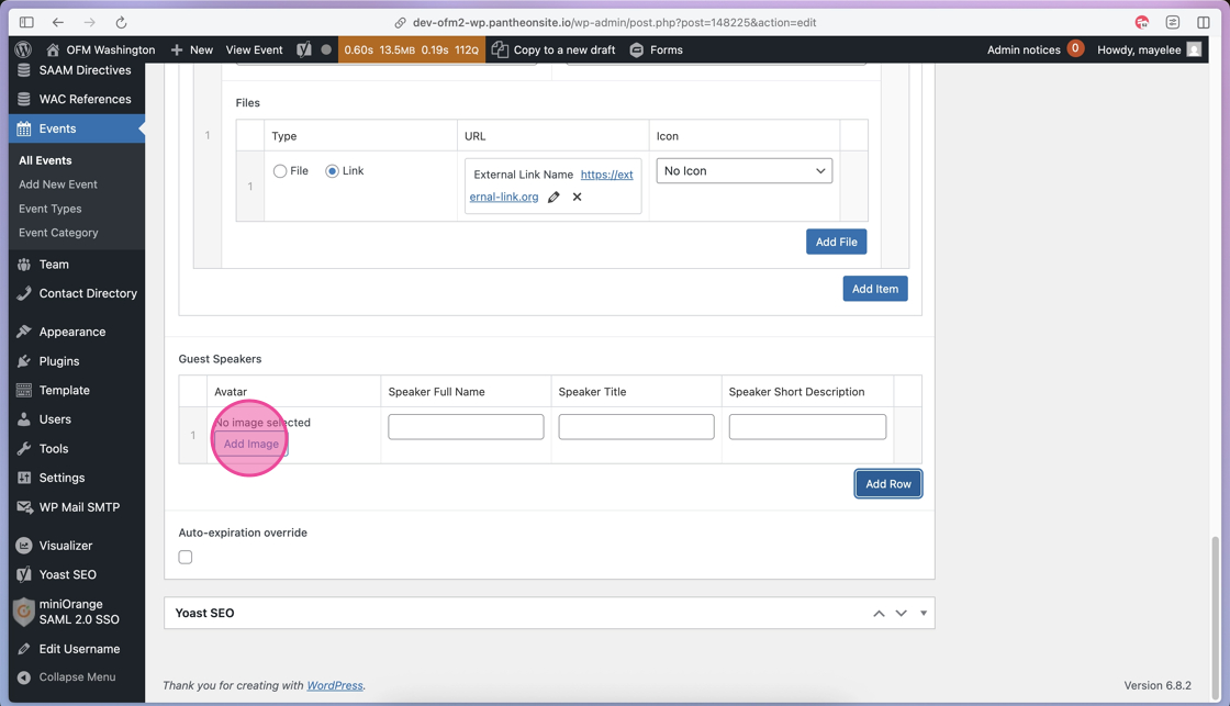 26. After you click to select the appropriate image, click the Select button to add the image to the Guest Speaker row.