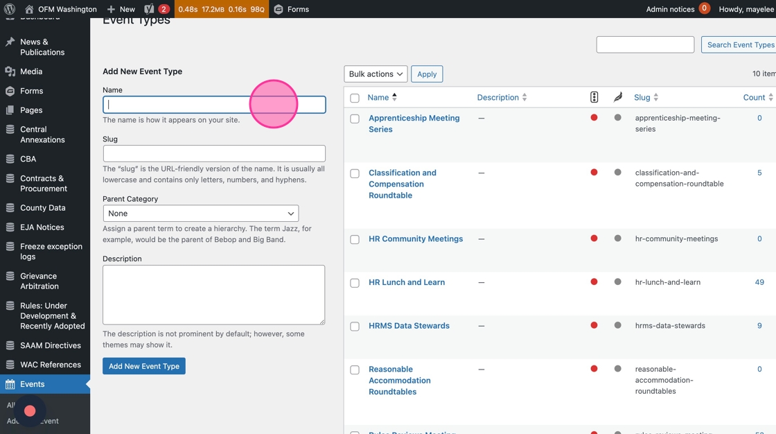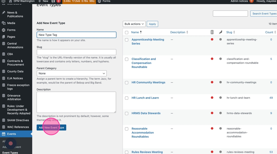 7. Similar to the Category tags, you’ll navigate to the Event Types section to add a new Type tag.