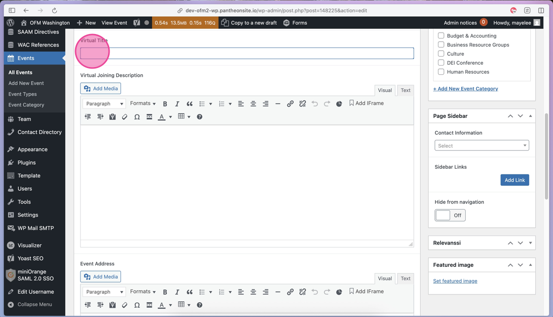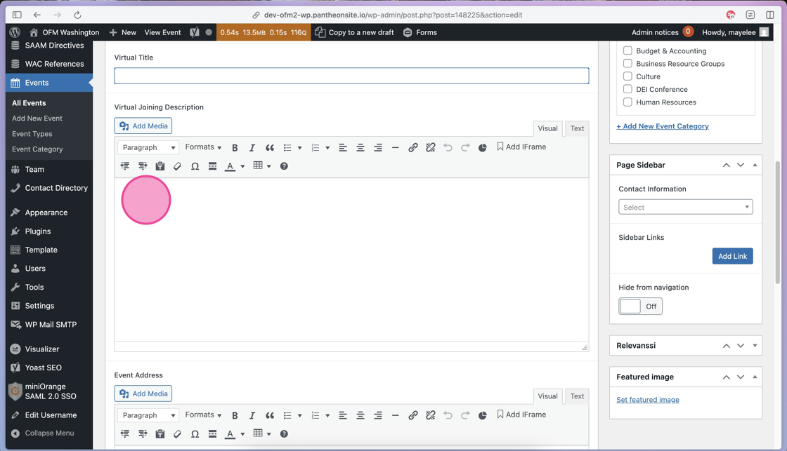 33. To add a Featured Image to this Event, click the Set Featured Image link to open the Media Library.