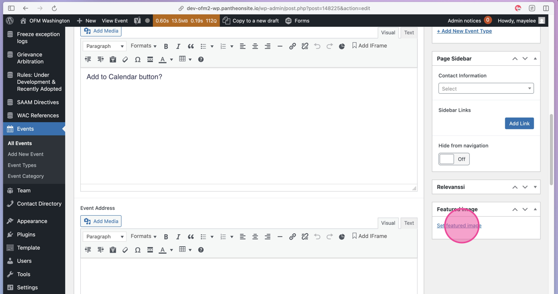 35. Once selected, click the Set Featured Image button to add it to the Event post.