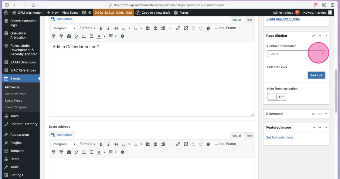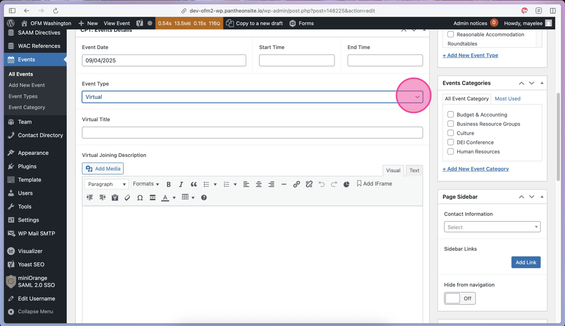 32. If you have a specific Contact that should be included on the Event post, click the dropdown menu.