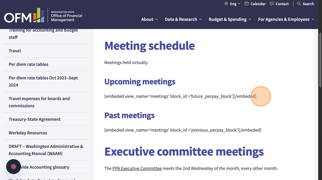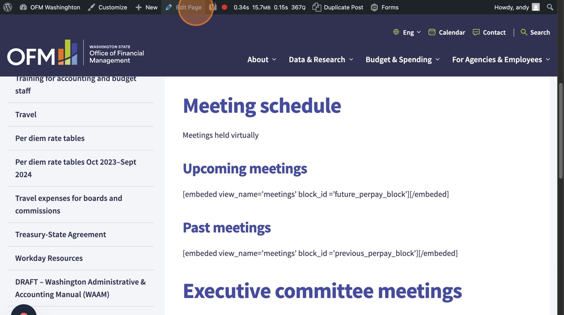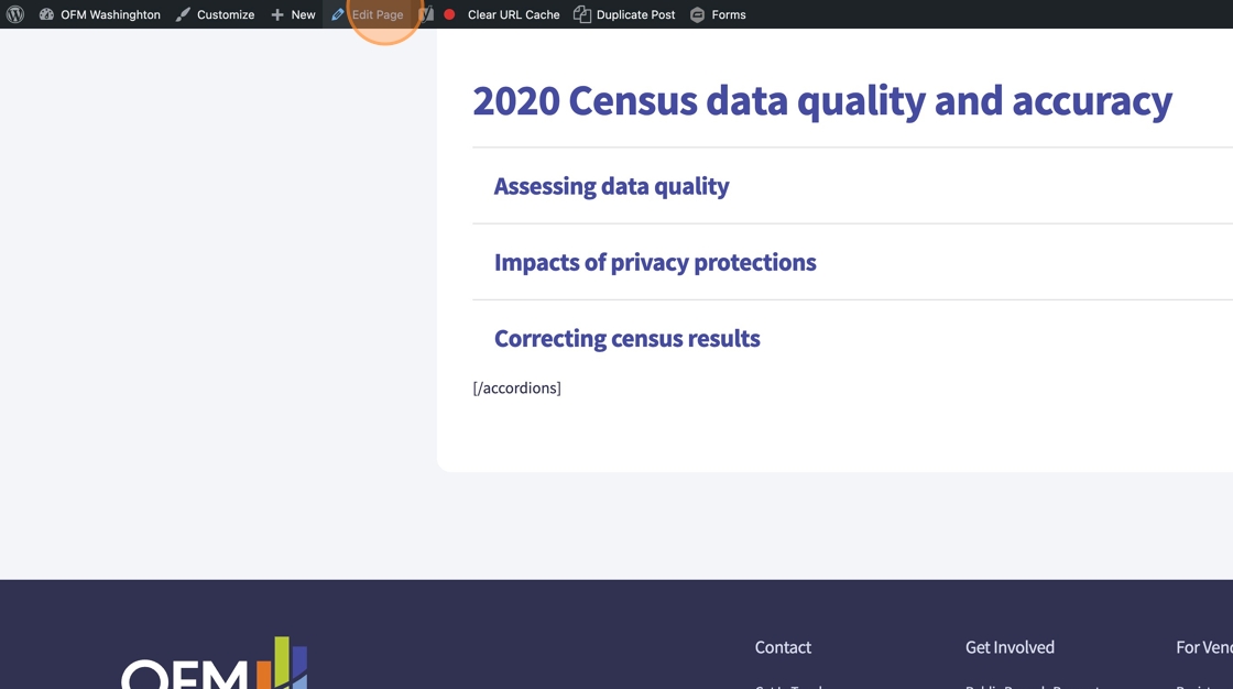 Some of the short codes that are used on the existing OFM site will need to replaced with either plain content in the text editor or with a new WordPress component. Here’s an example of a short code that needs to be replaced: