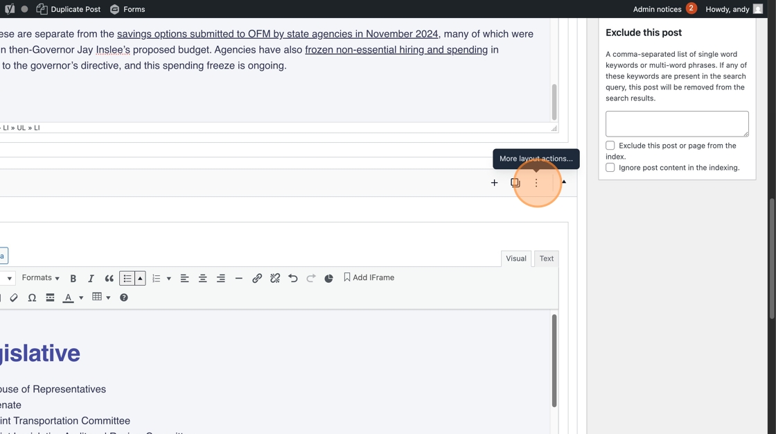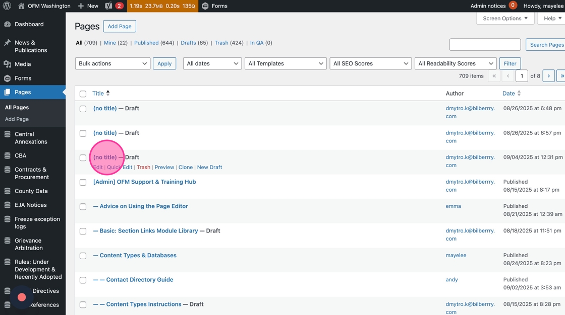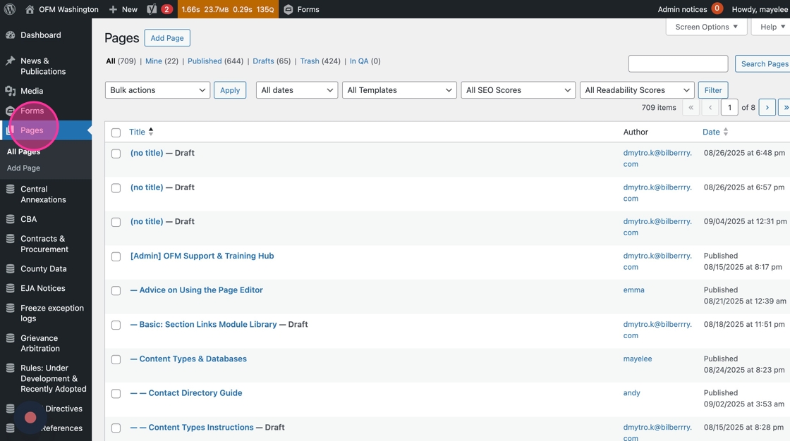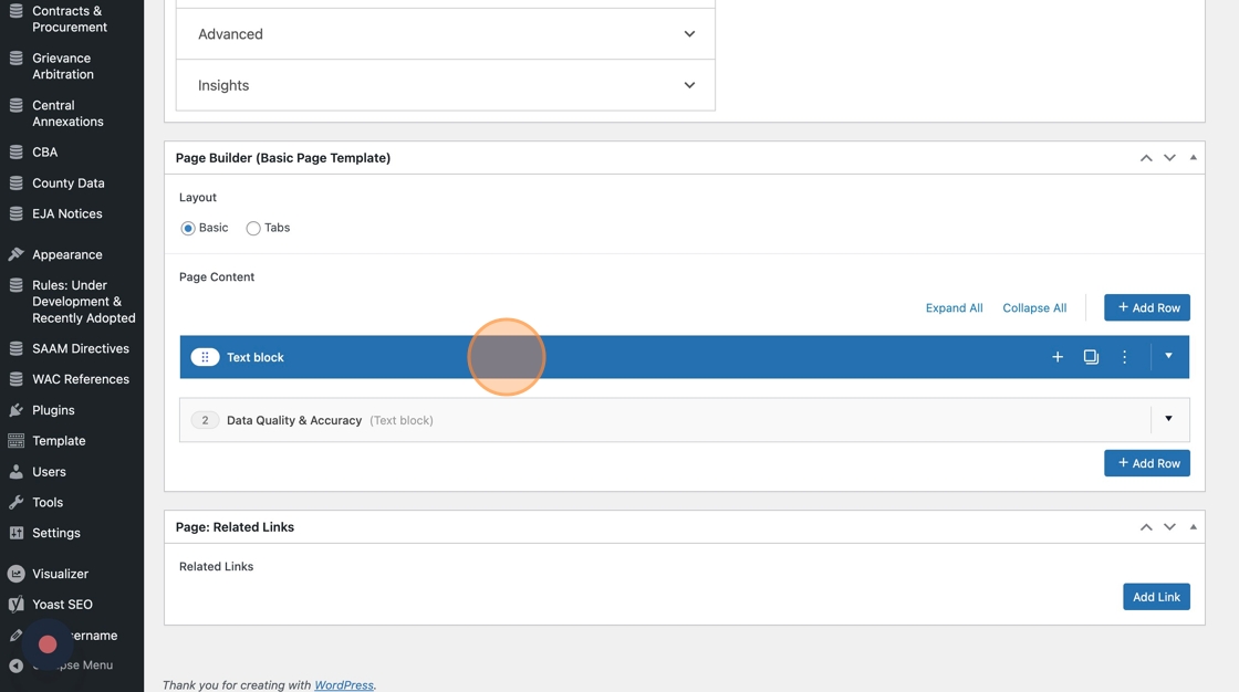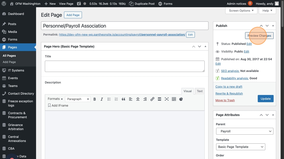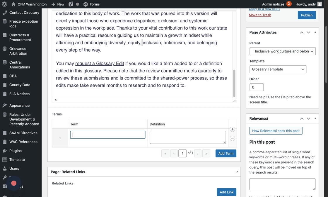 A handful of web editors created their own mini-glossary pages on the existing OFM site. If you’d like to maintain that experience on the new WordPress site, you’ll need to convert your page from a Basic Page template into a Glossary Page. Here’s how.