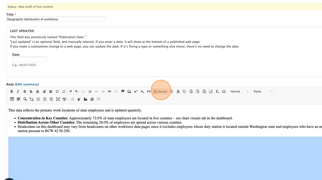 Tip: Pro tip: If you’re getting a little lost in all the short code, the live Drupal page will have the appropriate content hidden, so you can use it as a template for what you need to keep enabled as you work.