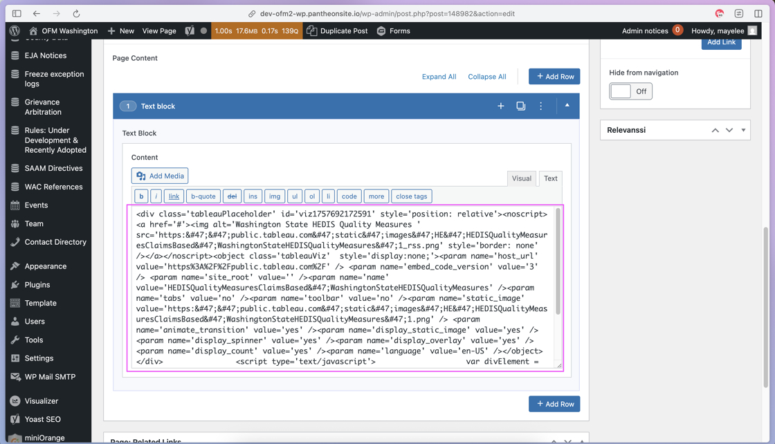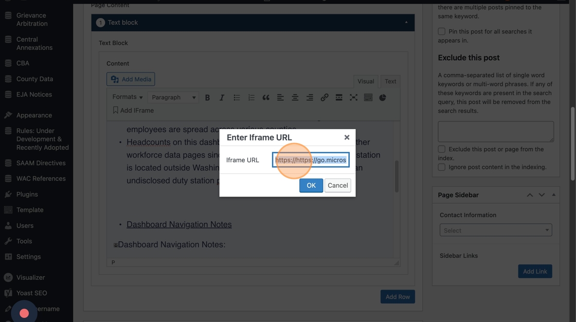 To re-insert the iFrame on the WordPress site, you’ll need to grab the link. You can do this from the page editor on the existing OFM site.