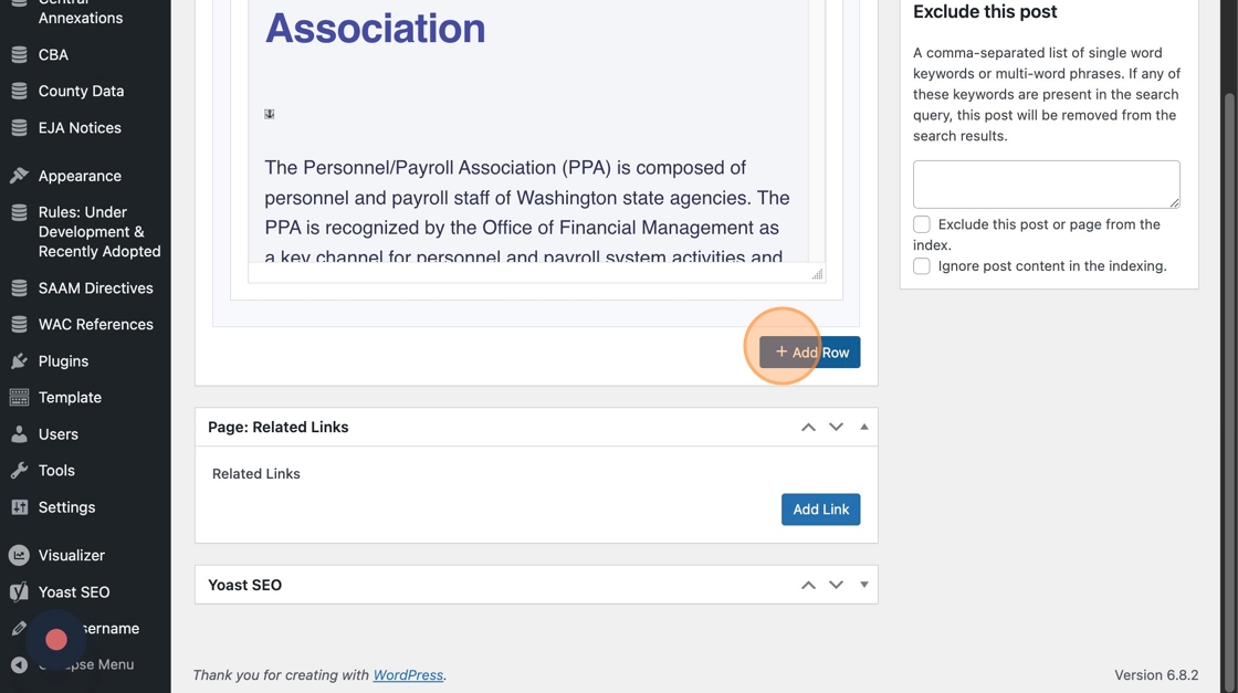 3. If you want to replace the short code with one of the new content modules available on the WordPress site, click the “+ Add a row” to Add a module.