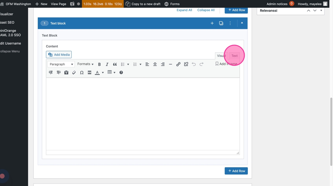 2. Click “Text Block” to pop open the text editor
