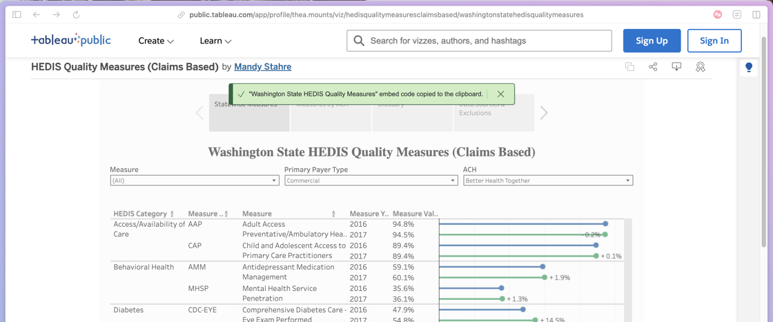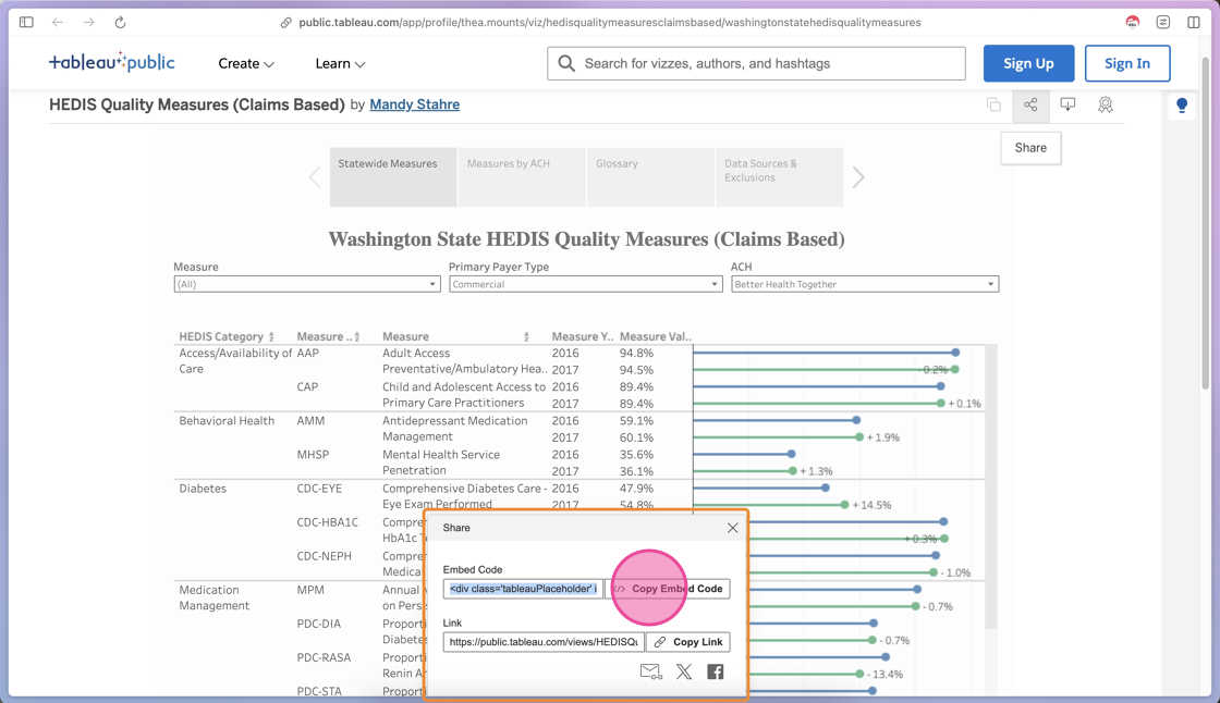 1. In the Tableau dashboard, navigate to the visual you’re adding to the website.