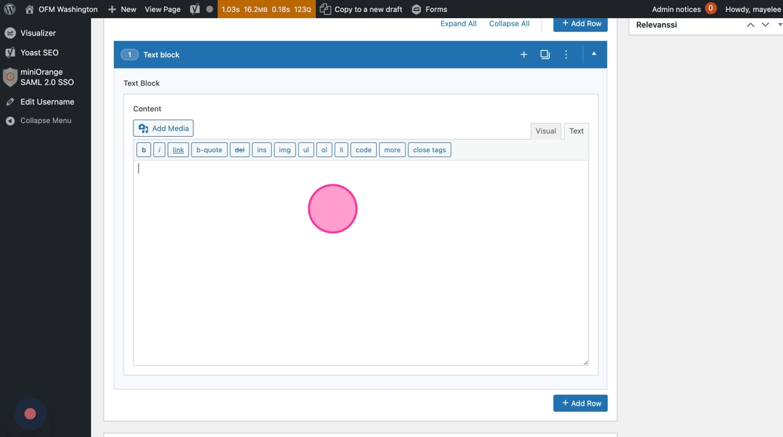 2. Click on “Text block” to open the text editor.